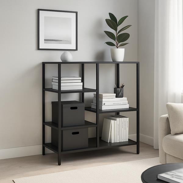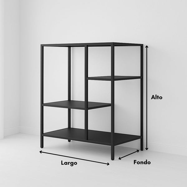 💪 Estructura robusta de hierro 🖤 Acabado en pintura negra mate al horno ✨ Diseño minimalista y moderno 📚 Ideal para libros, decoración y objetos de uso diario